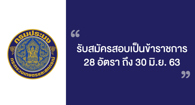 สมัครได้ทางอินเทอร์เน็ต ถึงวันที่ 30 มิถุนายน 2563 ตลอด 24 ชั่วโมง ไม่เว้นวันหยุดราชการ ที่เว็บไซต์ //fisheries.thaijobjob.com/