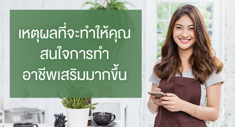 5.ต่อยอดเพื่อเป็นธุรกิจส่วนตัว ทุกวันนี้ใครๆ ก็ล้วนอยากจะมีธุรกิจเป็นของตัวเอง แม้งานประจำอาจมีรายได้ดี แต่ก็เป็นเพียงลูกจ้างเท่านั้น จึงเห็นหลายคนที่ทำงานประจำเพื่อสะสมเงินทุน ควบคู่ไปกับทำอาชีพเสริม แล้วต่อมาก็หันมาเน้นทำอาชีพเสริมที่เป็นธุรกิจส่วนตัวมากขึ้น