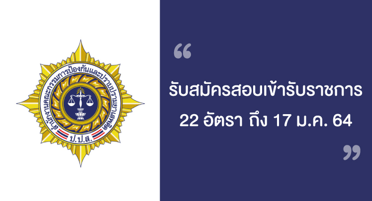 สำนักงานคณะกรรมการป้องกันและปราบปรามยาเสพติด (ป.ป.ส.) รับสมัครสอบเข้ารับราชการ 22 อัตรา ถึง 17 ม.ค. 64