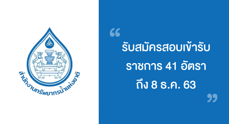 สำนักงานทรัพยากรน้ำแห่งชาติ รับสมัครสอบเข้ารับราชการ 41 อัตรา ถึง 8 ธ.ค.
