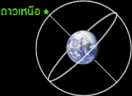 ดาวเหนืออยู่ที่เดิมไม่ขึ้น-ไม่ตก ก็เพราะแกน (สมมุติ) ที่โลกหมุนรอบตัวเองชี้ตรงไปยังดาวเหนือ