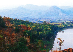 ทิวทัศน์ของผาวิ่งชู้ มองเห็นเสาดิน