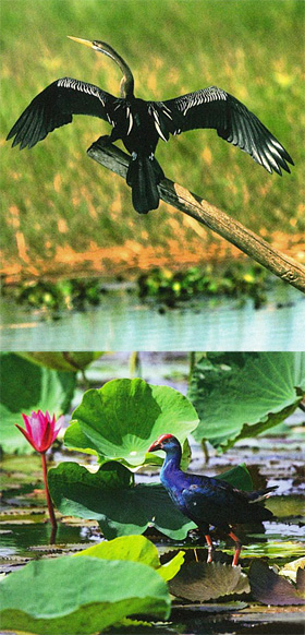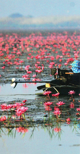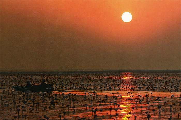 การล่องเรือไปตามเกาะแก่งกลางบึง ยังจะได้ชมเรือประมงลำน้อยของชาวบ้านที่ออกมาหาปลาเลี้ยงชีพ หลายคนสงสัย ตกลงที่นี่เป็นแหล่งอนุรักษ์ไม่ใช่เหรอ? ก็ใช่ แต่เค้าแบ่งพื้นที่ส่วนหนึ่งไว้ให้ชาวบ้านใช้ประโยชน์ด้วย เรียกว่าคนพึ่งพิงธรรมชาติ ธรรมชาติดูแลคน เมื่อคนอยู่ดีกินดีก็ดูแลธรรมชาติกลับคืน