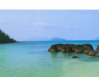 เกาะส่วนตัวขนาดเล็กที่อยู่ใกล้กับเกาะหมากด้วยระยะทางที่คาดว่าน่าจะว่ายน้ำไปถึงได้ ความพิเศษของเกาะขามรออยู่ ที่ชายหาด นั่นคือหินภูเขาไฟสีดำ หาดทรายสีขาว และน้ำสีฟ้าอ่อนใสแจ๋ว มองไกลเห็นสีของน้ำสลับเป็นฟ้าอ่อนฟ้าเข้มตามแนวของสันทรายและแนวปะการัง มองใต้น้ำใสแจ๋วเห็นพื้นทรายที่ทอดยาวออกไปในทะเลเกือบสามร้อยเมตร นอกจากชิงช้าไม้แขวนกับต้นไม้ใหญ่ที่เห็นแล้วอยากจะกรี๊ดกับความพอดีของการมีอยู่ของมัน ที่ร้านค้าเล็กๆ (อันที่จริงมีอยู่ร้านเดียว) นั้นมีทุกอย่างที่คุณต้องการ เช่าหน้ากากดำน้ำและตีนกบทั้งชุดมาในราคา 100 บาท โลกใต้น้ำตื้นๆของเกาะขามนั้นเพลิดเพลินไม่แพ้การนั่งทอดอารมณ์บนหาด