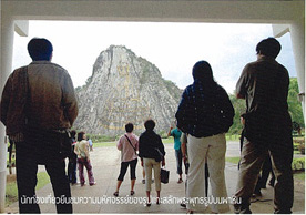 พระพุทธรูปแกะสลักเป็นลายเส้นสีทองประทับนั่งปางมารวินัยบนหน้าผาของเขาชีจรรย์ หรือนามพระราชทานโดยพระบาทสมเด็จพระเจ้าอยู่หัวว่า “พระพุทธมหาวชิรอุตตโมภาสศาสดา” นี้ สมเด็จพระญาณสังวร สมเด็จพระสังฆราชสกลมหาสังฆปรินายกได้ดำเนินการสร้างขึ้นเพื่อเฉลิมพระเกียรติพระบาทสมเด็จพระเจ้าอยู่หัว เนื่องในวโรกาสมหามงคลทรงครองสิริราชสมบัติครบ 50 ปี ในปี พ.ศ 2539