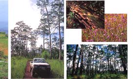 จากนั้นเดินทางต่อผ่าน ผาไทร ทุ่งไชโย จนทะลุทุ่งโนนสน ผ่านทุ่งกวางด่อน